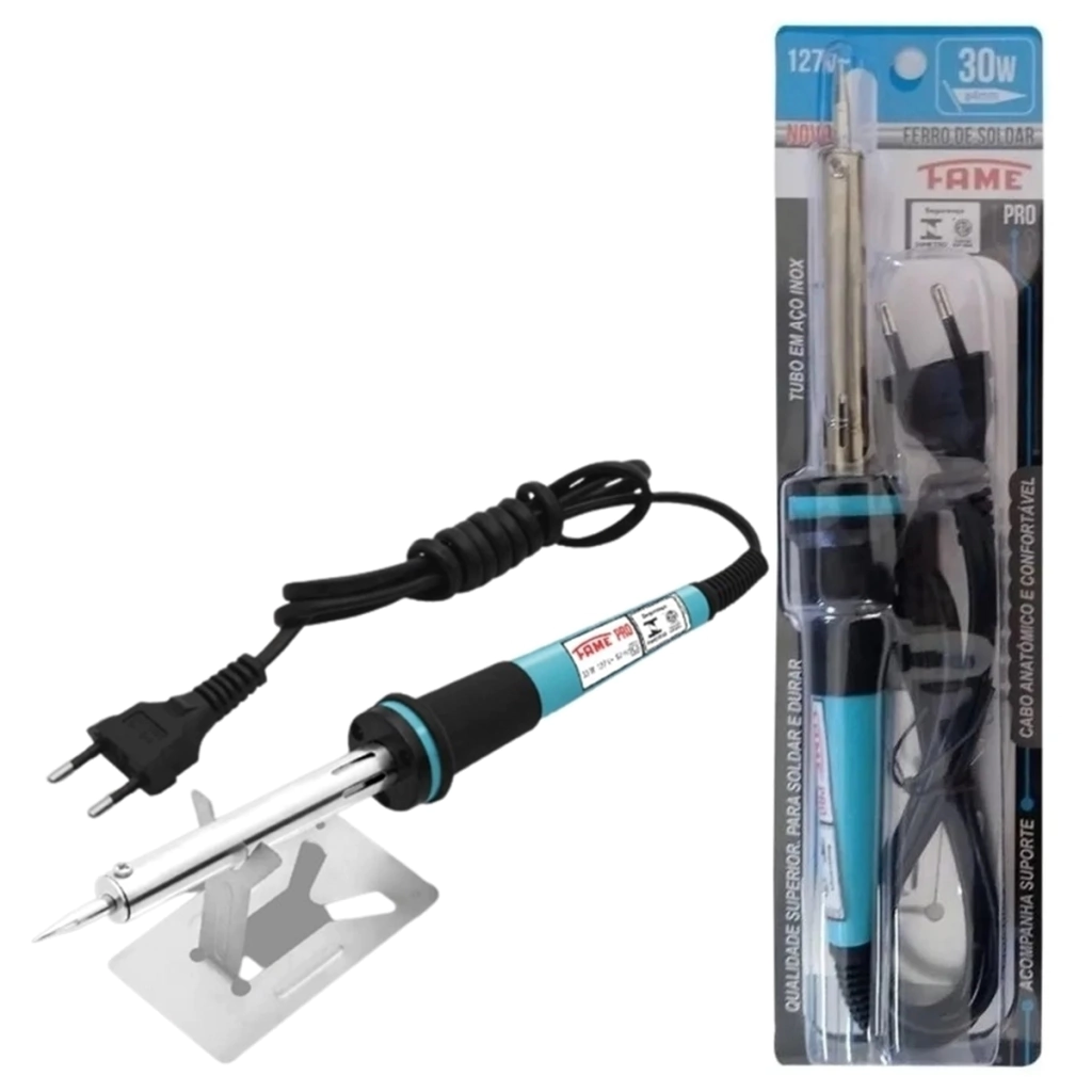 Ferro de Soldar 127V~ 30W - Cabo Azul - Acompanha suporte de descanso